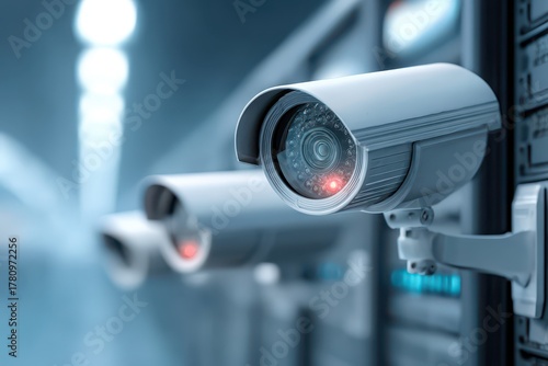A close-up view of modern surveillance cameras, highlighting advanced security and monitoring capabilities with a focus on safety and technology integration.