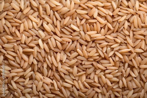 A close-up view of raw brown rice grains, showcasing their unique texture and natural color, perfect for culinary themes.