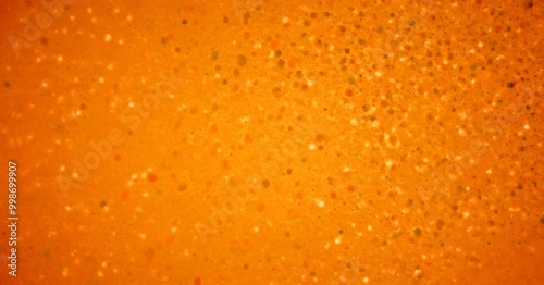 a close-up view textured orange surface with numerous small white dots scattered across it, creating a visually striking pattern