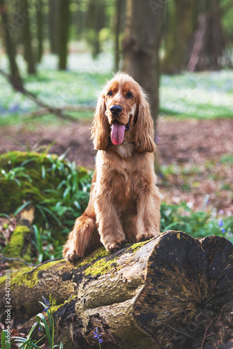 dog, pet, animal, puppy, spaniel, cocker, cute, canino, brown, setter, cocker spaniel, young, red, portrait, grass, mammal, breed, gold, retriever, nature, doggy, irish, white, golden retriever, domestic, wood, walk, ginger, tongue, majestic, beautiful, spring, bluebell, flower