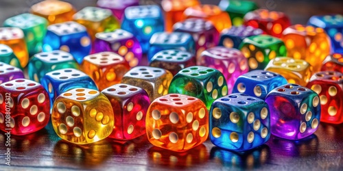 A collection of colorful gaming dice on a table , gaming, dice, set, collection, tabletop