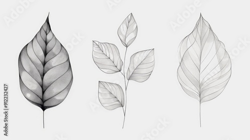 A collection of elegant and minimalist line art leaf showcasing the natural beauty of foliage in a clean modern and grayscale aesthetic