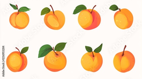 A collection of fresh, juicy peaches. The cute fruit is drawn in a simple flat style. Available in vector format for easy editing.