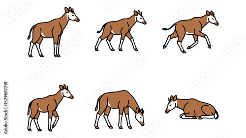 A collection of graphical Okapi illustrations in various poses