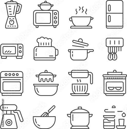 blender, oven, toaster, microwave, refrigerator, pot, bowl, hot drink, maker, mixer, steam, kitchen, appliance, icon, outline, cookware, utensil, food, drink, cooking, baking, equipment, contraption, tool, illustration, design, symbol, graphic, line, art, element, object, domestic, household, home, device, container, vessel, lid, handle, buttons, knob, cup, glasses