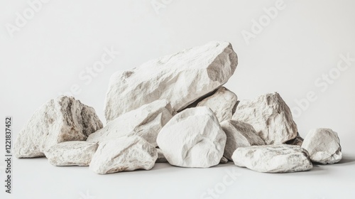 A Collection of Natural White Rocks Piled Together on a Clean Surface Showcasing Unique Textures and Shapes Ideal for Artistic Photography and Design Projects