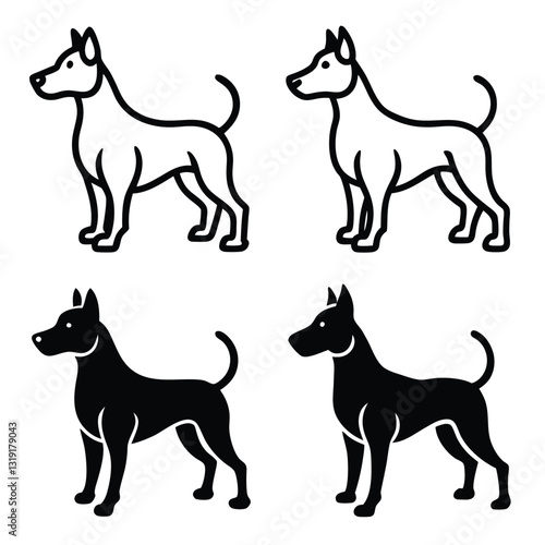dog, cat, silhouette, vector, animal, black, horse, goat, doberman, black cat, white cat, pet, illustration, simple, pose, design, black-and-white, digital artwork, monochrome, graphic design, goat, horse
