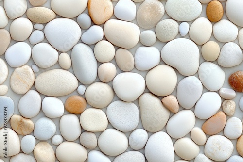 A collection of smooth, polished stones in varying shades of white and beige, perfect for natural design or landscaping projects.