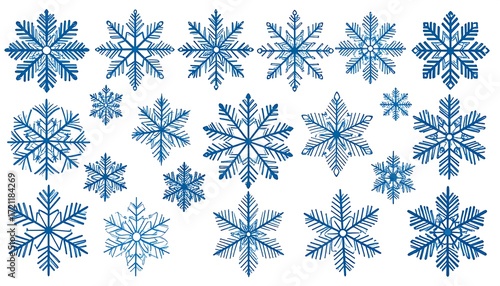 snowflake, blue, winter, design, pattern, graphic, collection, shape, decorative, geometric, abstract, illustration, ornament, glacé, cold, ice, symmetry, detailed, intricate, variety, elegant, festive, christmas, icy, beautiful, art, vector, image, wintery
