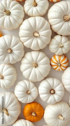 A Collection of Varied Pumpkins in White and Orange Displaying Autumn's Charm