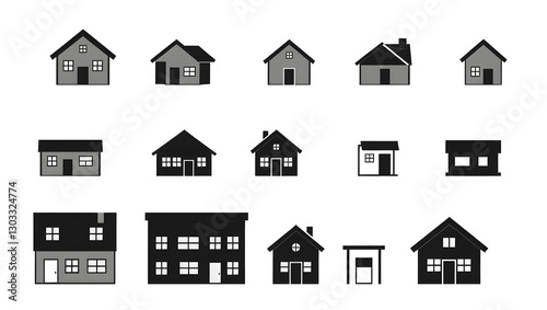 a collection of various small houses, home illustrations with different designs