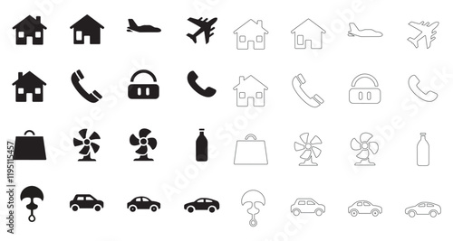 a collection of versatile icon bundles. This collection of versatile icons is presented in filled and outlined styles.