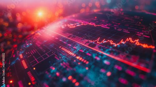 A colorful, abstract image of a graph with red and blue lines. Concept of chaos and unpredictability, as the lines seem to be constantly changing and overlapping