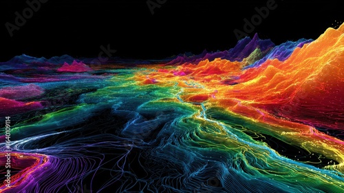 colourful, abstract, landscape, mountain, hill, vibrant, full, energy, background, design, space, wallpaper, futuristic, technology, texture, digital, bright, light, motion, illustration, concept, art, pattern, blue, effect, graphic, modern, topography, surface, black, science, shiny, topographic, contour, rainbow, curve, element, wave, line, creative, high-coloured, terrain, environment, green, geometric, outline, dark, swirl