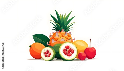 A colorful and refreshing still life showcasing a bounty of tropical fruits 258