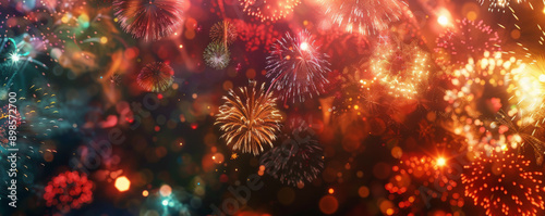 A colorful array of fireworks lighting up the night, with a dark bottom section for copy space.