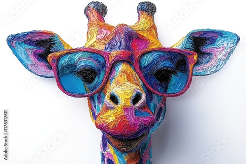 giraffe, sunglasses, colourful, art, vibrant, illustration, animal, portrait, creative, design, playful, fun, texture, style, expression, personality, whimsical, modern, unique, fashion, visual, craft, eye-catching, cheerful, imaginative, bold, detail, character, pop, bright, hue, shape, form, joy, light, perspective, decoration, graphic, high-coloured, fantasy, nature, wildlife, humor, charme, representation, artistic, surreal