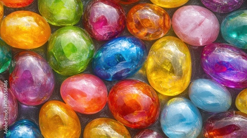 egg, colourful, decoration, festive, celebration, spring, holiday, vibrant, shiny, design, texture, art, pattern, arrangement, background, cheerful, bright, seasonal, ornamental, playful, variety, surface, collection, glossy, joyful, aesthetic, craft, joy, easter, tradition, symbolism, beauty, fun, creativity, display, light, reflections, hue, shape, contrast, visual, event, colours, unique