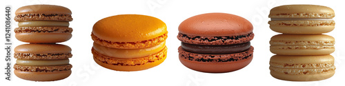 A colorful assortment of macaron cookies displayed in a tempting arrangement, showcasing their delightful textures and vibrant hues. PNG transparent background