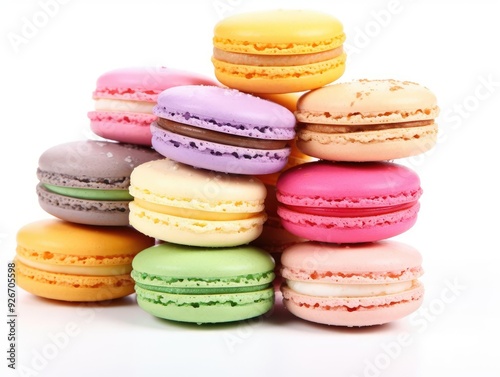 A colorful assortment of macarons stacked in a delightful arrangement, perfect for dessert lovers and sweet treat lovers.