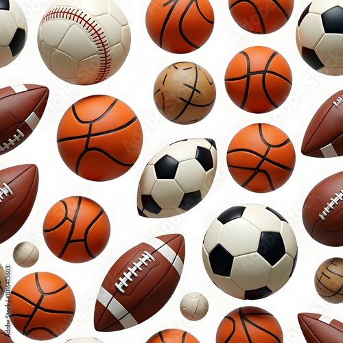 A Colorful Assortment of Sports Balls Featuring Footballs, Soccer Balls, Basketballs, and More, Representing Popular Team Sports