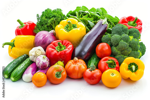 A colorful assortment of vegetables isolated against a white backdrop, cut out from the background, with no background. Concept of nutrition and health. Generative Ai.