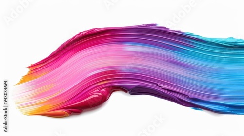A colorful brush stroke on a white background. The brush stroke is made up of a variety of colors, including pink, blue, and yellow. The brush stroke appears to be abstract and free-flowing