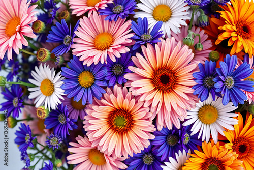 arrangement, assortment, beautiful, beauty, bloom, blooming, bloom, blossom, blue, botanical, bouquet, bright, bunch, cheerful, closeup, colourful, colours, daisy, delicate, diverse, flora, floral, flower, flower, fresh, garden, gentle, gerbera, intense, lively, macro, many-coloured, many-coloured, natural, nature, orange, flower petals, pink, plant, rich, saturated, soft, spring, summer, variety, vibrant, high-coloured, white