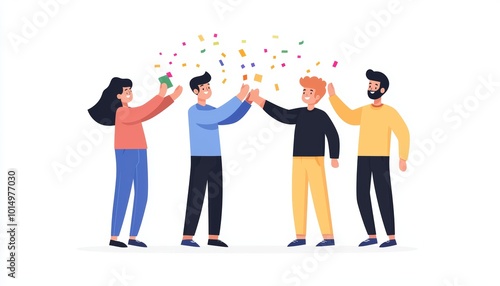 oneness, interaction, positivity, sharing, gathering, cheer, excitement, playful, bonding, confetti, motivation, teamwork, inspiration, community, social, enjoyment, friends, laughter, festival, creativity, relaxation, joy, together, festive, success, entertainment, event, colours, party, connection, smile, group, companionship, happiness, energy, fun, toast, illustration, alcohol, cartoon, moment, lifestyle, cheerful, celebration, animating, engaging, camaraderie, joyfulness