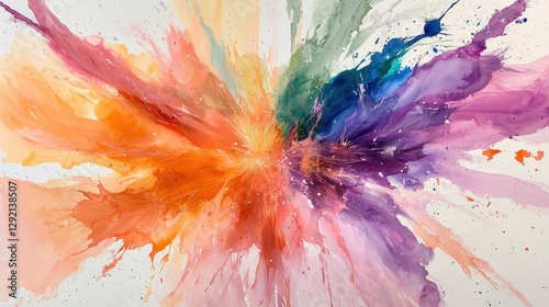 A colorful explosion of paint splatters on a white background
