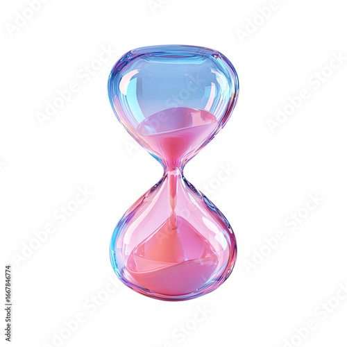 hourglass, glasses, colourful, pink, blue, time, timer, clock, sand, glassy, shiny, reflective, background, isolated, object, symbol, icon, illustration, design, element, graphic, art, creative, modern, minimalist, simple, still, life, nobody, no, people, horizontal, full, colours, vibrant, beautiful