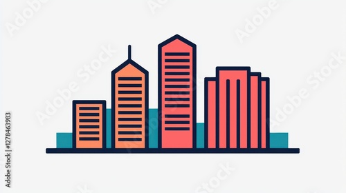 A colorful illustration of a modern city skyline featuring various building shapes and heights, embodying urban architecture and design.