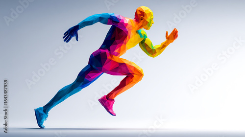A colorful low-poly abstract figure of an athlete running