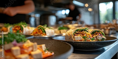 vegetarian, wrap, tofu, stir fry, colourful, healthy, kitchen, presentation