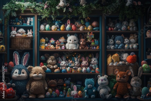 A Colorful Shelf Filled with Adorable Stuffed Animals for a Joyous Easter Day Celebration