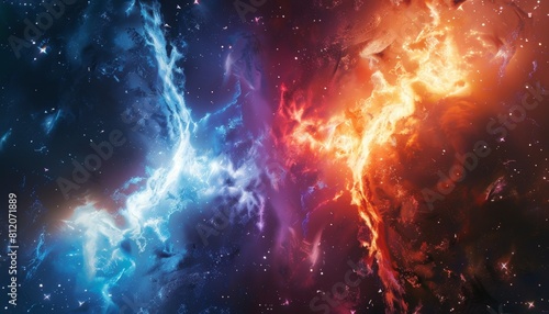 A colorful space scene with two glowing red and blue clouds by AI generated image