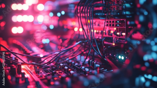 cable, electronic, music, production, studio, technology, wire, sound, complexity, creativity, lighting, contrast, equipment, network, sound engineering, control, futuristic, connection, abstract, colourful, digital, high technology, innovation, intensity, system, neon, illuminated, vibrant, pattern, hardware, organised, recording, electricity, setup, vibe, detail, craftsmanship, modernity, artistic, audio, workstation, workflow, composition, dynamic, connected, focused