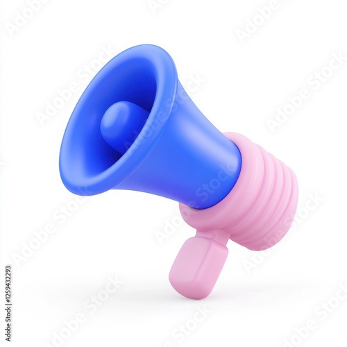 A colorful toy horn featuring a blue bell and pink base, suitable for children"s playtime and celebrations.
