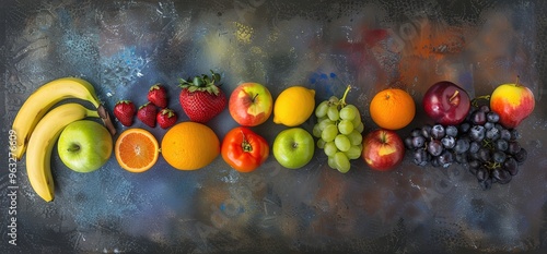 fruit, fruit, fresh, healthy, food, diet, nourishment, vitamin, colourful, variety, row, blue, background, banana, apple, strawberry, peach, grape, orange, lemon, red, green, yellow, healthy eating, vegan, vegetarian, organic, natural, delicious, sweet, juicy, tasty, vibrant, still life, food photography, table, overhead, topview, bright, high-coloured, summer, spring, harvest, market, grocery, tomatoes, isolated