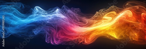 A colorful wave of smoke, blending hues of blue, pink, and orange against a dark background.
