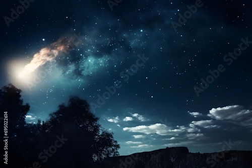A comet, an asteroid, a meteorite falls to the ground against a starry sky. Neural network AI generated art