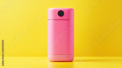 A compact USB-powered blender in hot pink, placed on a sunny yellow backdrop.