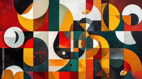 A composition of overlapping geometric shapes in rich holiday colors, creating an abstract and modern representation of Christmas night.