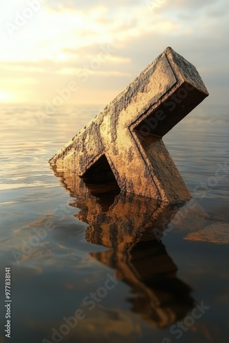 A concrete anchor partially submerged in calm water at sunset, symbolizing stability and grounding, Ideal for concepts of strength, resilience, and balance in nature and construction contexts,