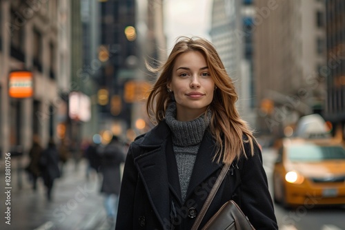 confident, businesswoman, walking, down, city, street, carrying, briefcase, modern, urban, background, captured, style, mag, photo, woman, people, fashion, beauty, person, face, hair, outdoors, model, autumn, 1, smile, lifestyle, casual attire, winter, smiling, jacket, fall, looking