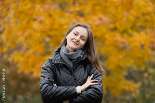 woman, autumn, foliage, leaf, park, smiling, confident, portrait, nature, fall, colourful, seasonal, tree, background, cheerful, arm, crossed, sunlight, casual attire, wear, beauty, lifestyle, happiness, serenity, expression, calmness, celebration, warmth, environment, fashion, scenery, high-coloured, smile, landscape, day, explore, adventure, freedom, colours, vibrant, active, companionship, yellow, smile, forest, leaf, tree