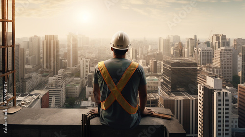 a construction engineer inspects the city from the roof of a buildingp. Generative Ai
