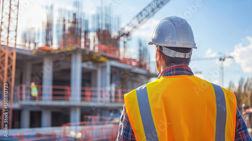 A construction manager observing site operations, ensuring safety and efficiency