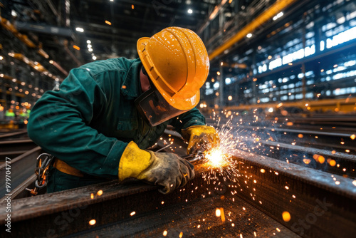 welding, construction, men at work, steel, beam, tower block, spark, safety, helmet, industrial, city landscape, infrastructure, labor, teamwork, machinery, tool, profession, craftsmanship, dynamic, architecture, blue-collar, manual, heat, metal, height, urban, design, scaffolding, bolt, cable, enhancement, building, trade, precision, equipment, strength, durability, energy, effort, skill, advancement, skyline, compliance, movement, performance, assembly