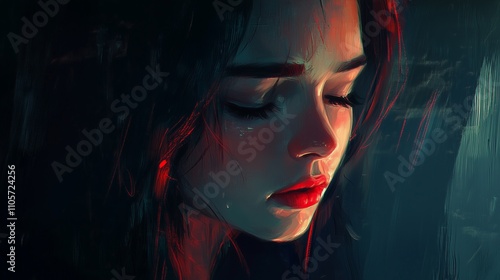 contemplation, missy, closed eyes, indoor, evening, red light, blue light, deep thought, portrait, emotional, beauty, calm, lighting, face, artistry, creativity, solitude, hair, art, woman, expression, feeling, dream, peacefulness, calmness, introspection, shadow, brightness, warmth, stillness, softness, mood, gaze, elegance, natural light, calmness, ambience, quietness, thought, imagery